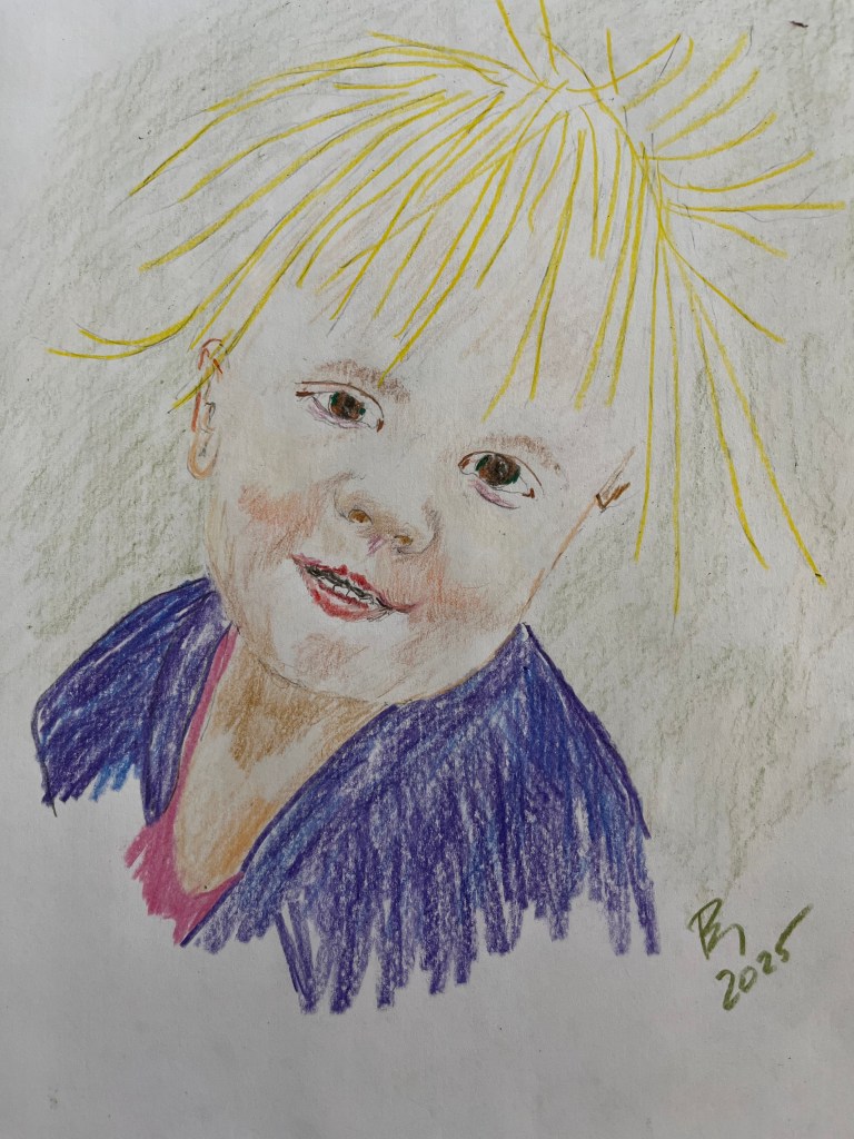 About a year ago I downloaded an app that displayed photos on my phone and then allowed me to trace the image onto paper by looking through my phone. It sounds like magic. It is magic. Here’s an image of one of my great granddaughters that I drew using the Da Vinci Eye app.