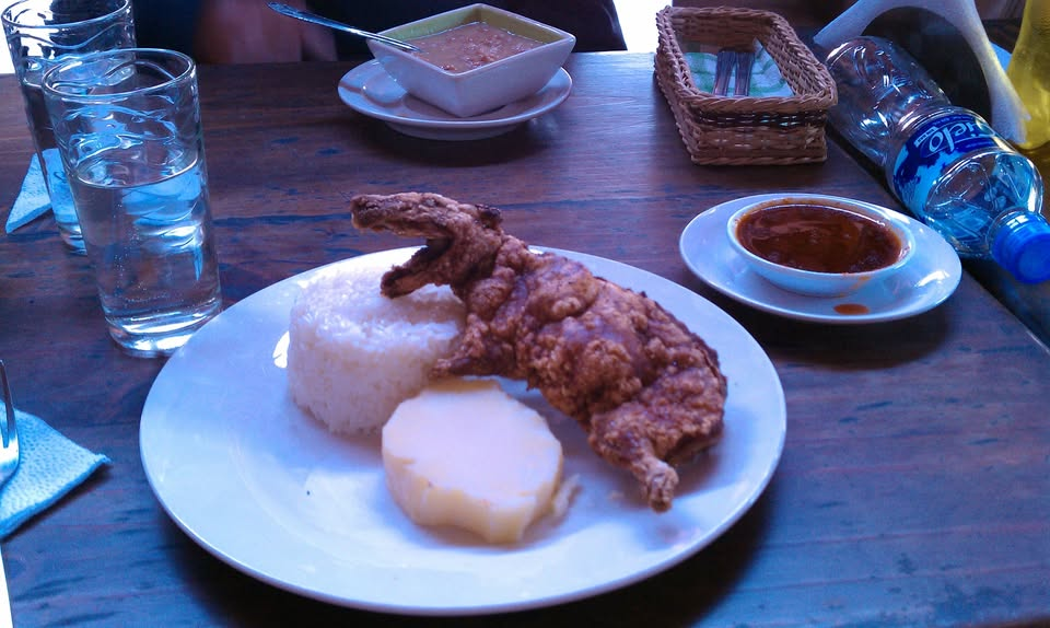 Some people say that Peruvian Guinea Pig tastes a little like chicken. I didn’t think so. I took the attached picture before diving in.