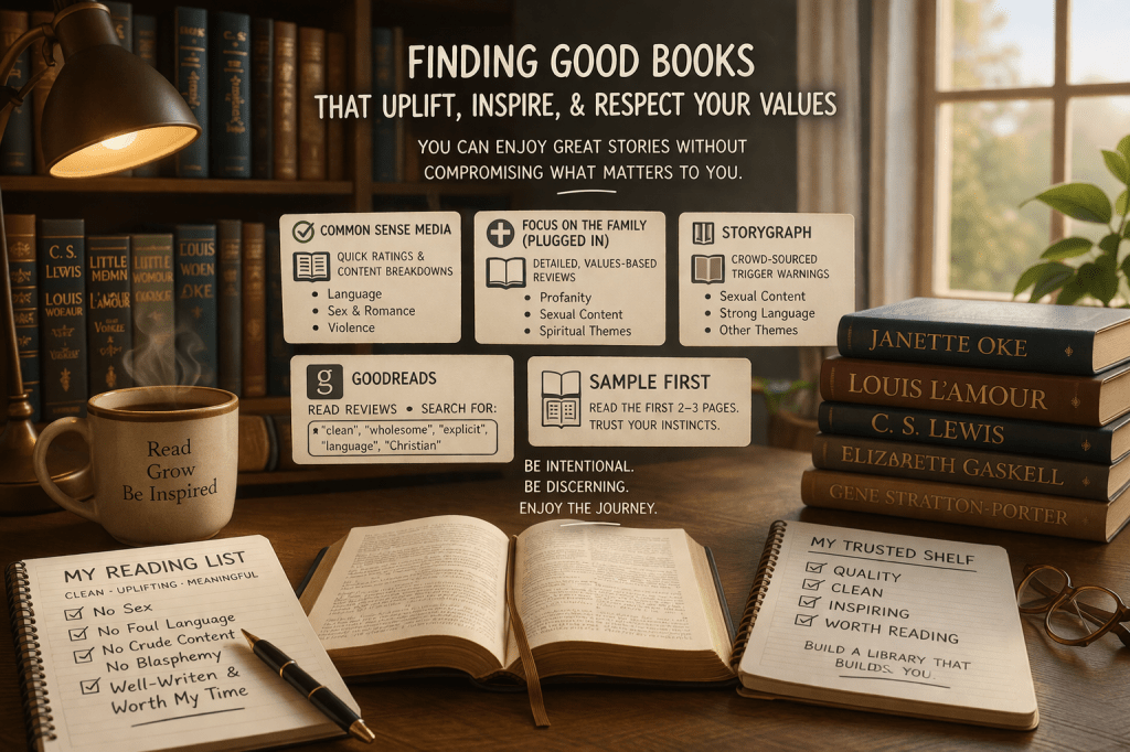Thatâs a great questionâand a harder one than it should be. Finding good books that are also clean, thoughtful, and uplifting often requires a bit of intentional filtering, because most recommendation systems donât prioritize those values.