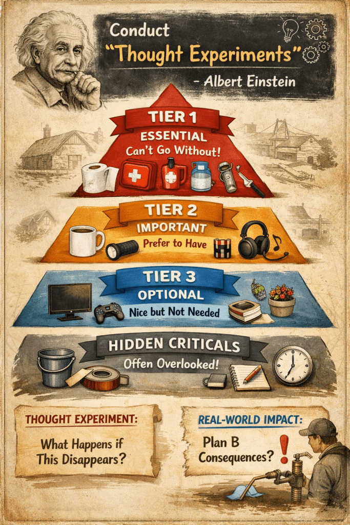 Thatâs a really thoughtful exerciseâand honestly a very practical one, especially given your hands-on, self-reliant mindset. Youâre essentially building a personal âresilience hierarchyâ: what truly matters vs. whatâs just comfortable.